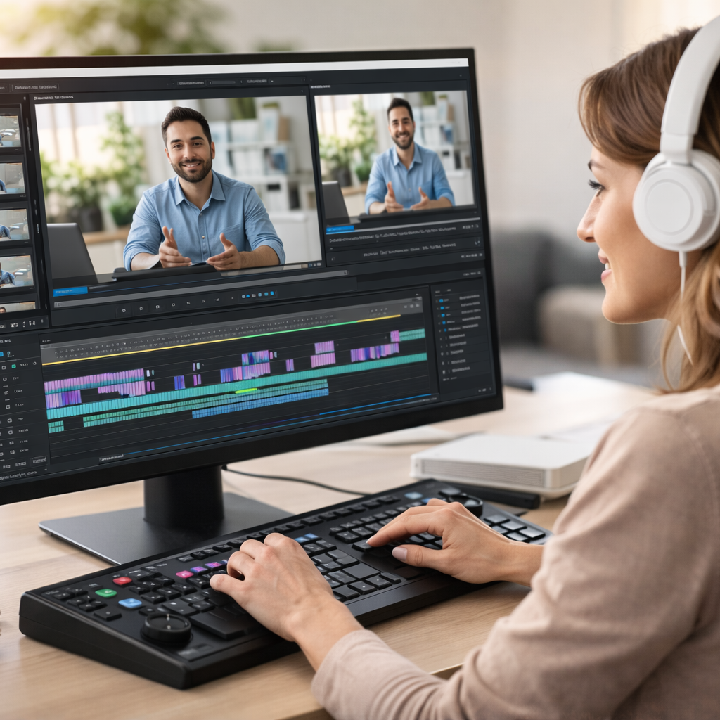 A localização de vídeos vai além da tradução: adaptamos o conteúdo audiovisual para o mercado de destino, incluindo edição visual, remoção ou substituição de textos na tela, ajustes gráficos e adequações culturais. O resultado é um vídeo que parece ter sido produzido originalmente no idioma final.